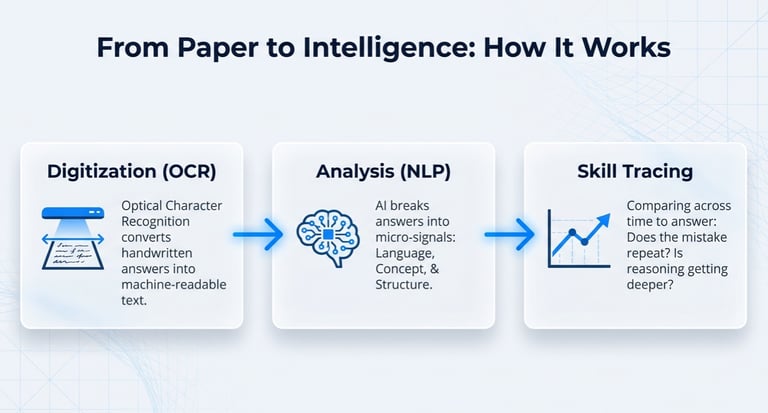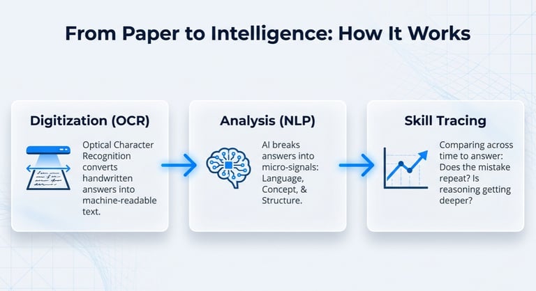 By converting exams and assessments into learning intelligence, the platform enables institutions to move from outcome-based evaluation to skill-based understanding.