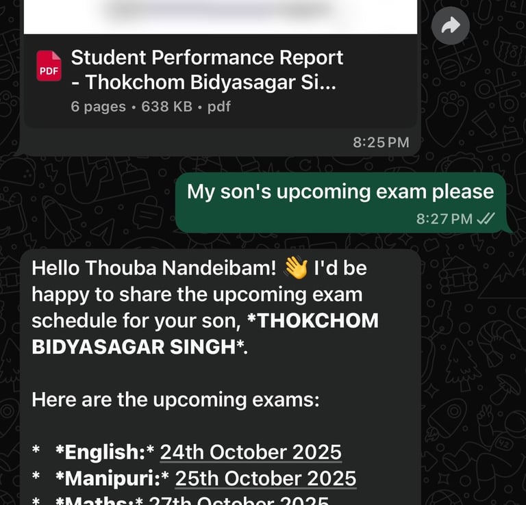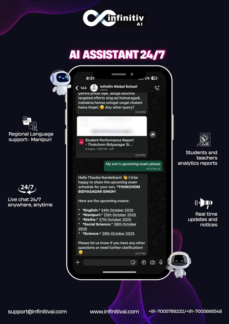 Access to attendance and marks. Detailed report of their children at the tip of their fingertips anytime, anywhere